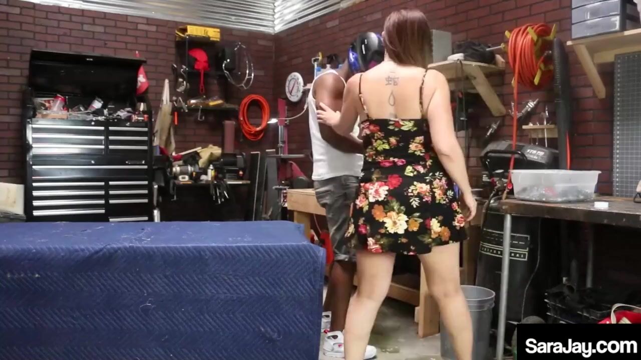 Big booty cougar Sara Jay mouth fucks a hung garage guy before taking his huge dick up her mature pussy until he gives her a facial! Full Video & Sara Jay Live @ SaraJay.com!