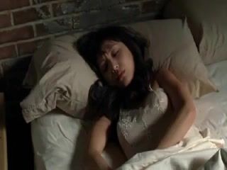 Jenny Mollen nude on her back in bed as she receives oral sex from a guy and he then moves up to squeeze and suck on her great breasts.