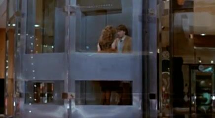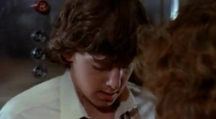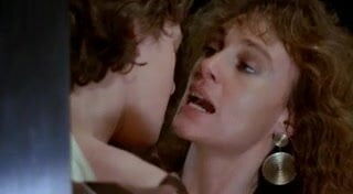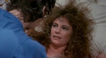 Jacqueline Bisset laying on her back with her breasts exposed in a love scene with a guy. From Class.