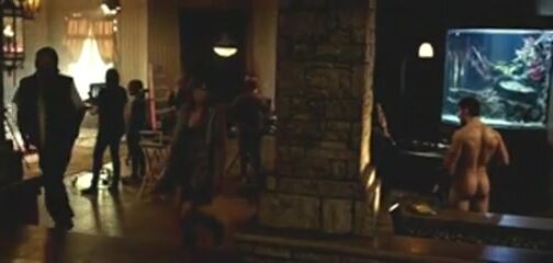 Nadine Velazquez nude standing bedside and reveal her nice breasts, bush and bare butt from behind as guy lying in bed and watching her. From Flight.