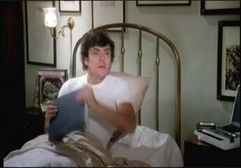 Ursula Andress stripping down naked for a guy, showing breasts and bush as she climbs into bed and tries to get him to join her. From The Sensuous Nurse.
