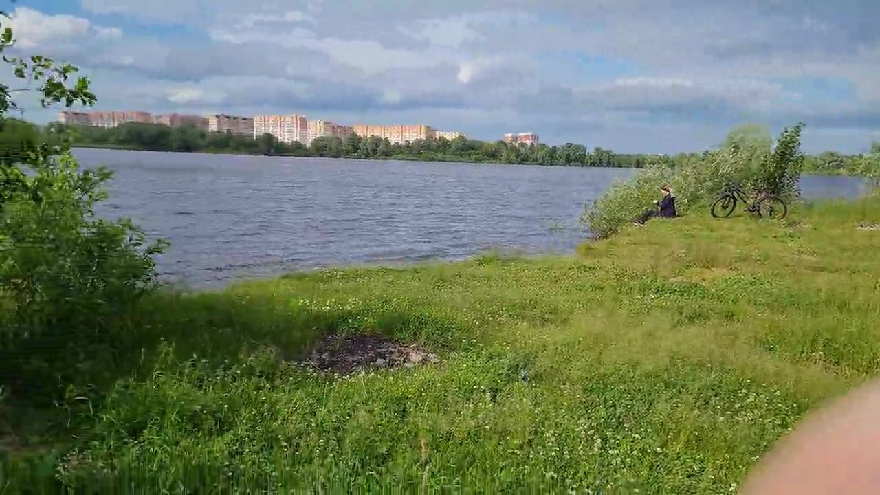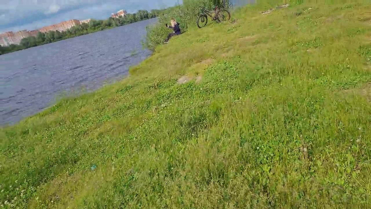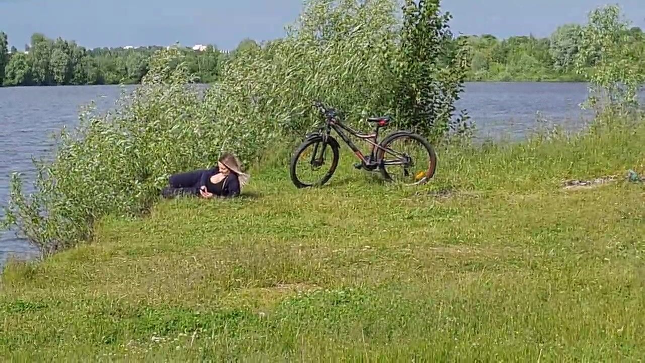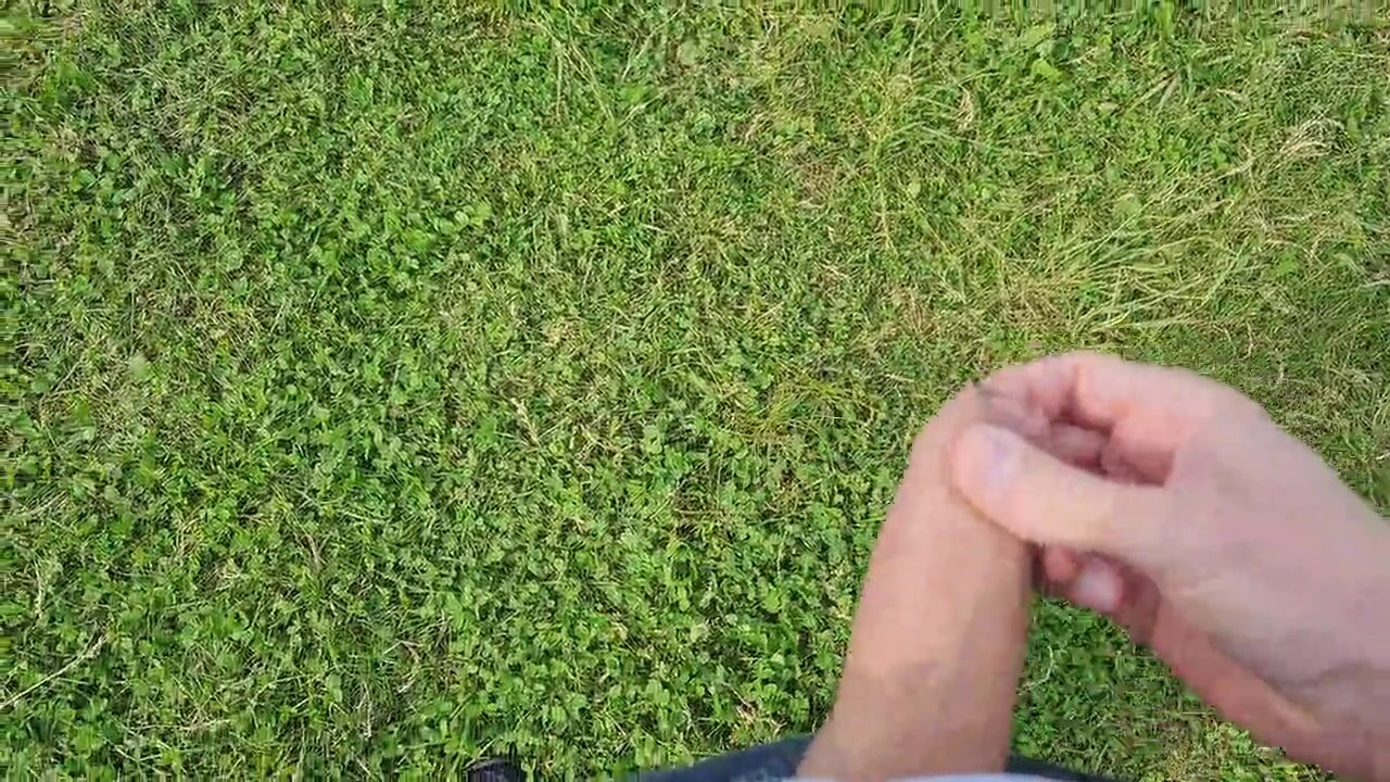 Man Public Flash Cock and cumshot near blone girl with big natural tits on nature