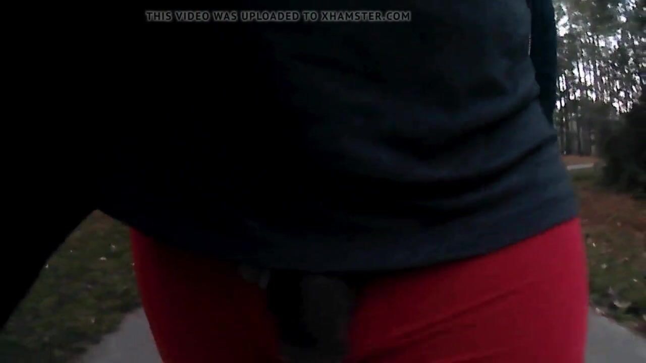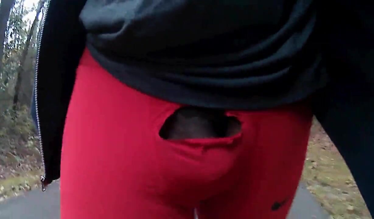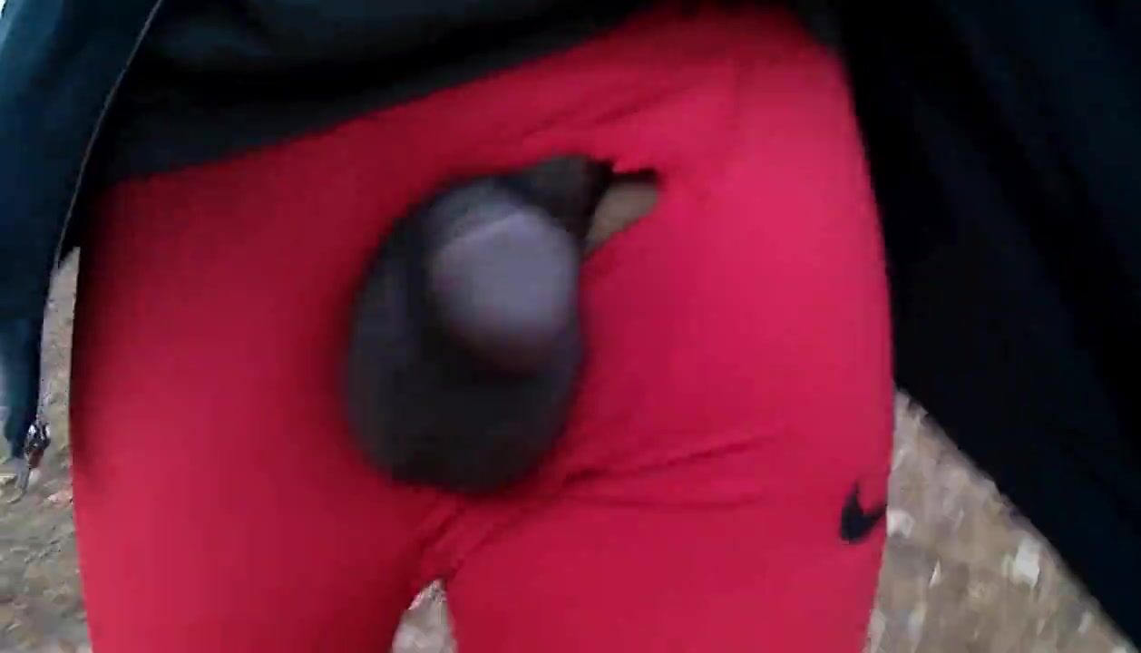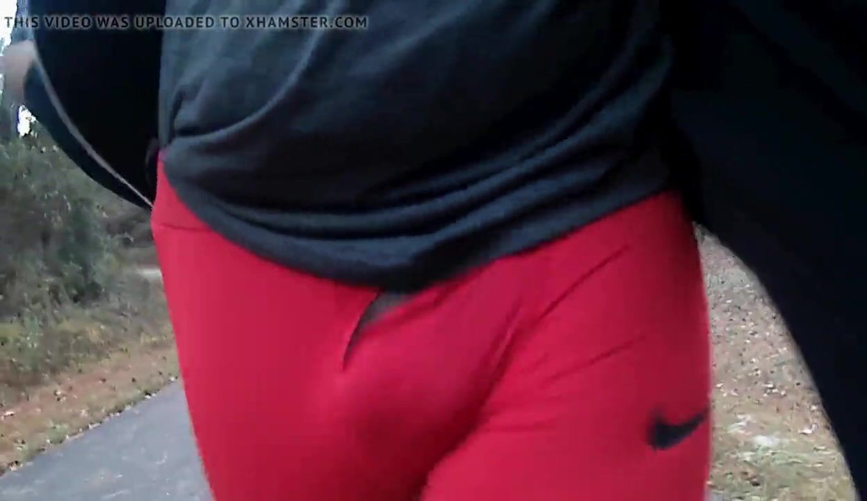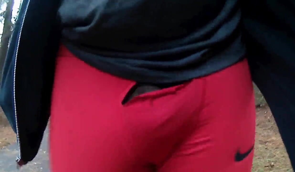 Walking outdoors in Red Nike Leggings Dick Flash