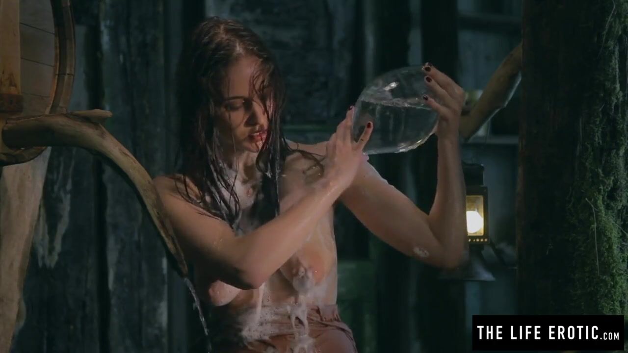 Big round nipples on a girl secretly masturbating in her hut