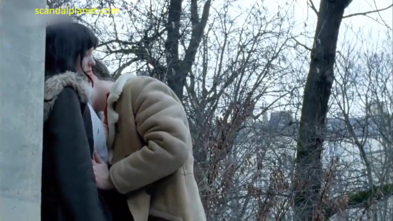 Léa Seydoux stands in front of a guy an gives him a good look at her naked breasts. Her shirt is unbuttoned and a boyfriend touches and kisses her tits. We have a clear view of Lea`s big nude boobs.