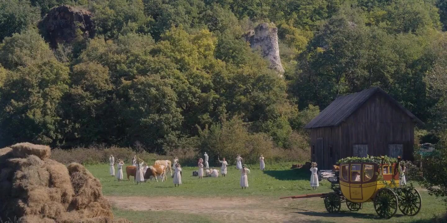 Jack Reynor, Isabelle Grill & Florence Pugh in a scene from MIDSOMMAR.