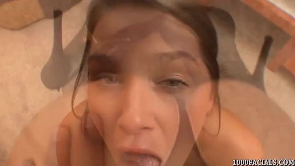 Aside from having a cock shoved down her throat, Abby Cross loves to lick her own spit off freshly shaven balls before taking a massive load to the face.