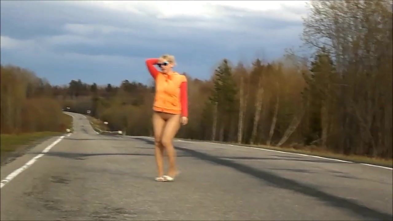 Mature without panties walking on the road