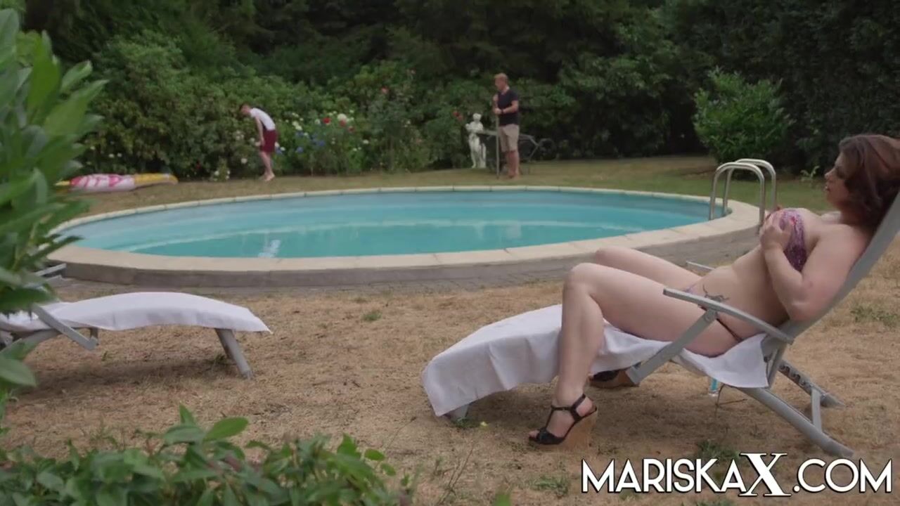 Lucia Love was enjoying some sun outdoors while the landscapers were working. Before you know it she was being stuffed by both of their cocks at once!