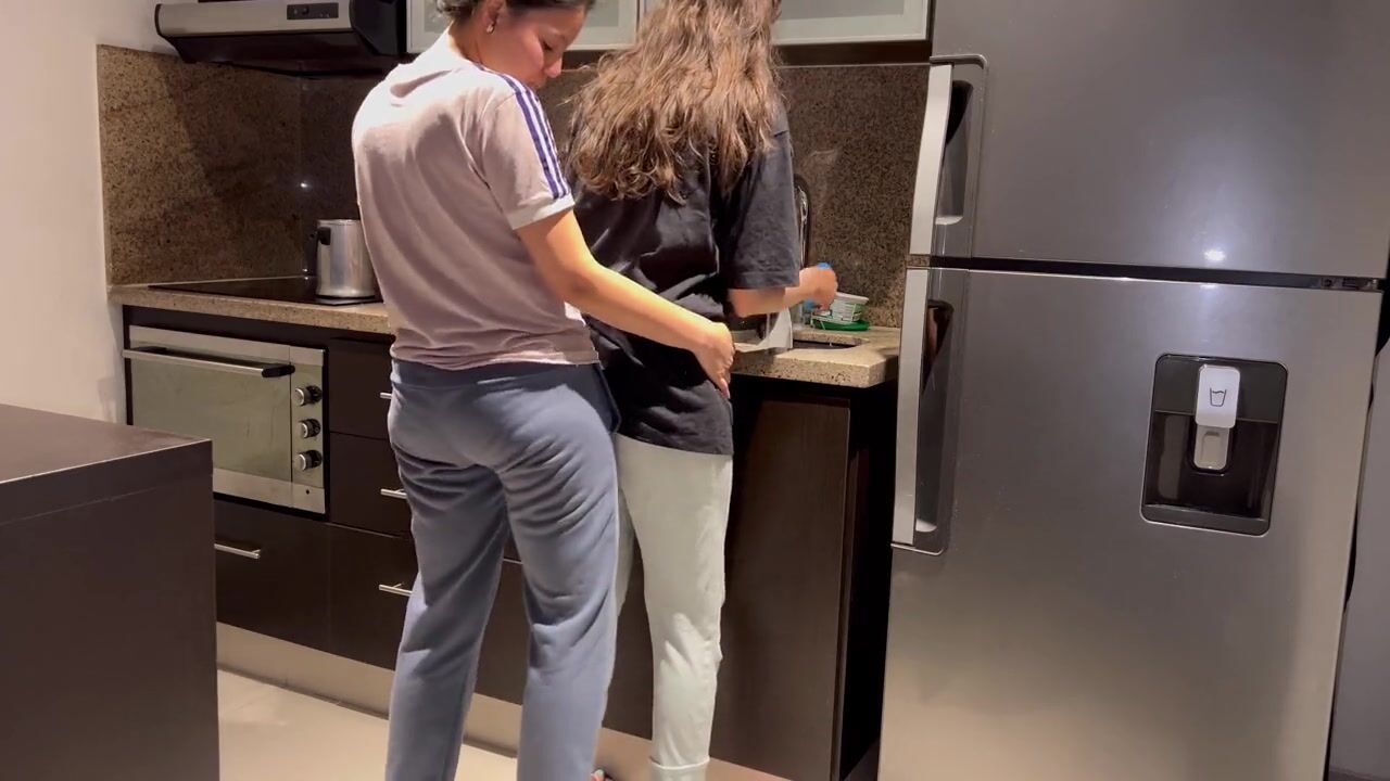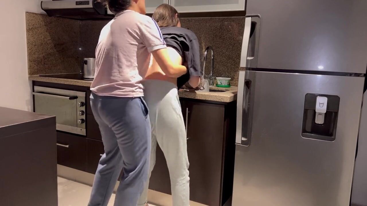 Wife fucked hard while washing dishes in the kitchen, getting her to cum before her stepmom gets home, I stick my fingers in her pussy and fuck her in the ass and later she eats my pussy and I give.