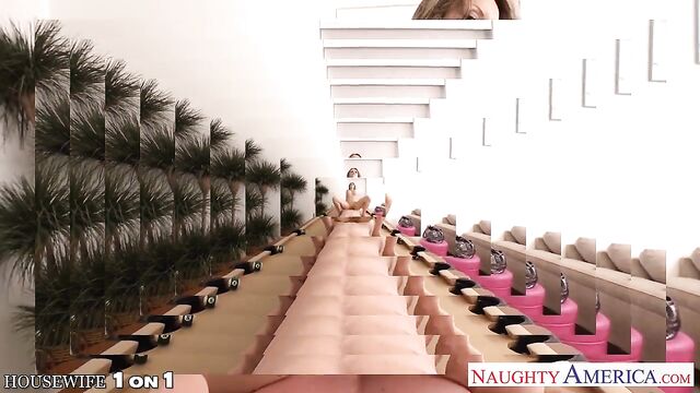 Superb tattooed housewife Courtney Cummz sucking and fucking a large schlong in POV style