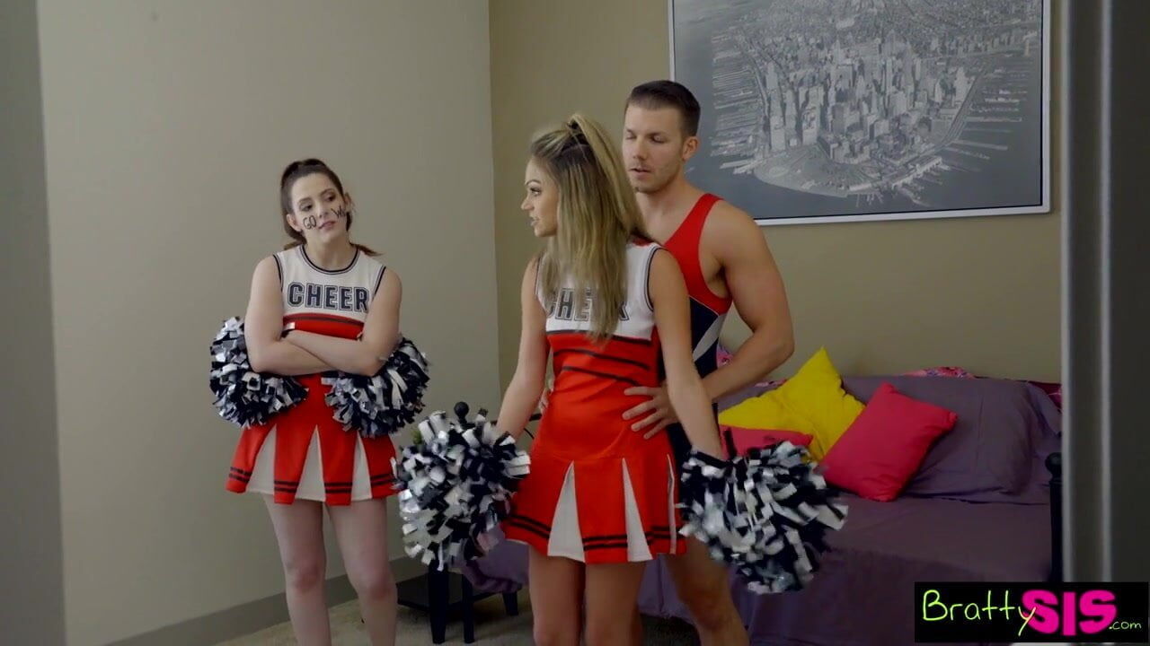 At a home cheer practice with her BFF Ms Faris and her step brother, Ember soon realizes they are a lot closer when she finds them with his big cock deep inside her cum filled pussy!
