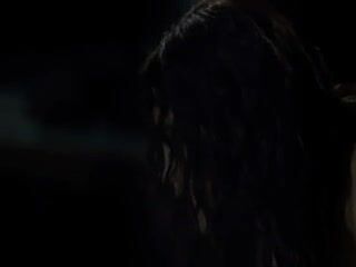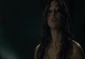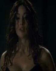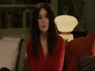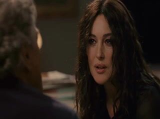 Monica Bellucci in a skimpy black dress that shows plenty of cleavage We then see Monica Bellucci topless while underneath the guy on a bed as they have sex.
