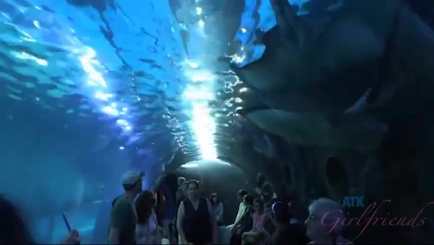 Megan is dressed really cute to go to the aquarium. She's amazed with all the sea creatures and gets lots of photos. You buy Megan a coffee and drive to the beach.