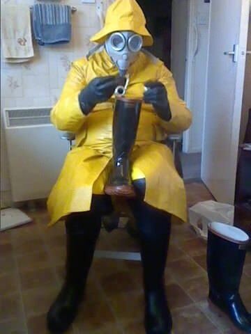 New oilskin coat arrived today so I had a good wank to test drive it! mmmm