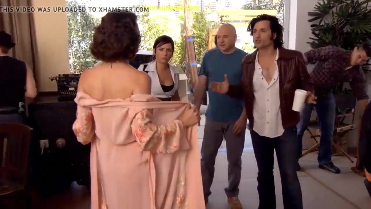 Carla Gallo removes her robe and shows a front of the naked body to guys. We get a great close look at her nude boobs and juicy nipples.