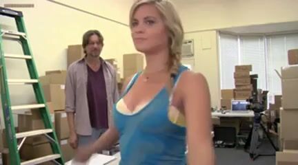 Betsy Rue having sex with a guy from behind while he is on top of her as another guy films the fantasy for a porn movie until more of the crew enter the room.
