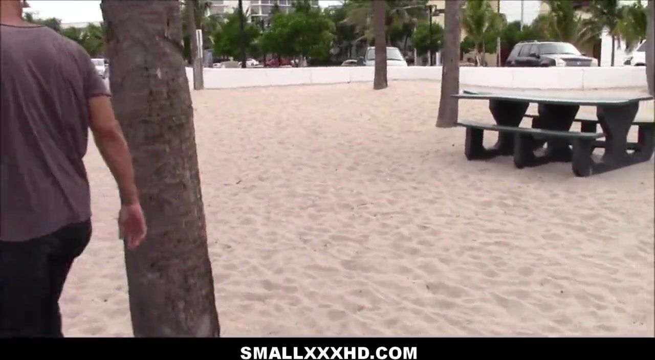 Super tiny Gina Valentina is at a local park on the beach waiting for dealer to show up. She wants a hookup on her deal but she still owes her dealer money from the last time they met. He comes up wit