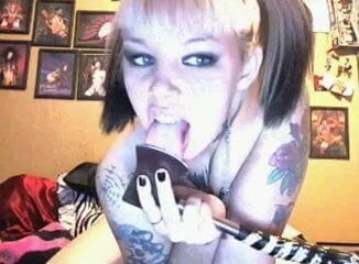 Weird Tattooed Slut wanks with a Hatchet on Cam !! WTF !! This Lady is one Adventurous Pervy Type !!