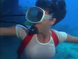 Jacqueline Bisset scuba diving in a white t-shirt that shows her nipples as she checks out the underwater life and explores a shipwreck. From The Deep.