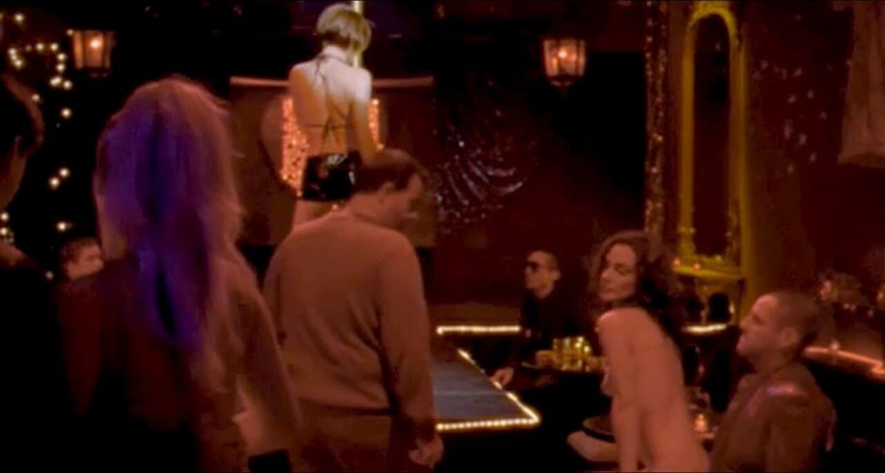 Annie Parisse performs lap dance in a strip club and gives us a nice view of her nude boobs, pointed nipples and hot butt in pink thong panties.