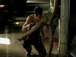 Laetitia Casta naked showing her breasts and buns as making out with some guy on the floor and roll over on top of each other.
