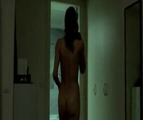 Belen Fabra naked underneath a guy in bed, showing her breasts and a hint of bush as the guy has sex with her and kisses her breasts. From Diary of a Nymphomaniac.