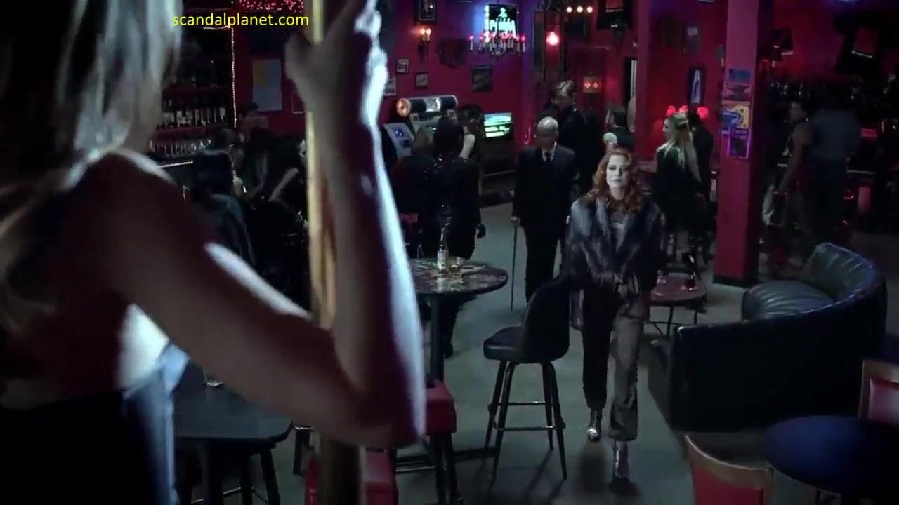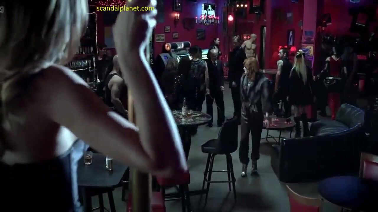 Natasha Alam in a hot striptease scene shows her big naked tits. She is dancing around a dancing pole and exposes her breasts. She gives us a nice view of her nude boobs and juicy nipples.