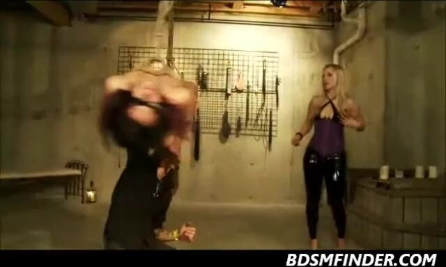 Couple ties up a brunette shibari suspends and spanks her