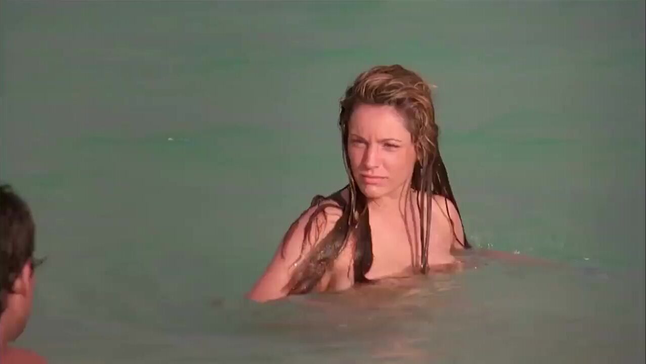 Kelly Brook in a hot nude scene shows her wet tits and bush. She is swimming with a guy and gives us a great look at her big nude boobs, and juicy nipples.