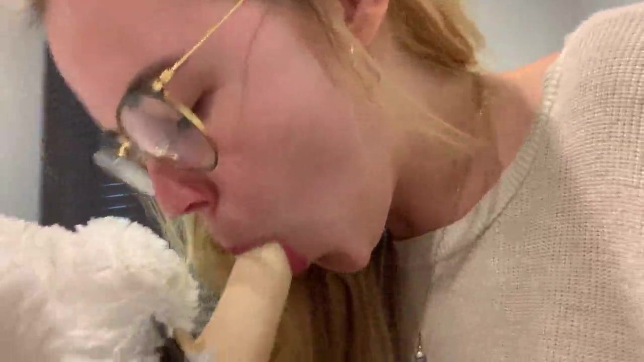 Young ukrainian blonde bitch play with toy bear
