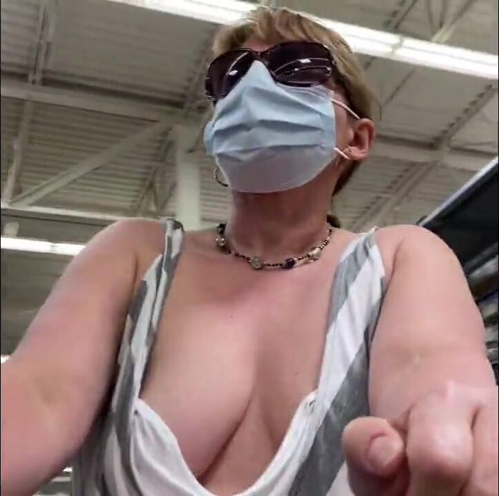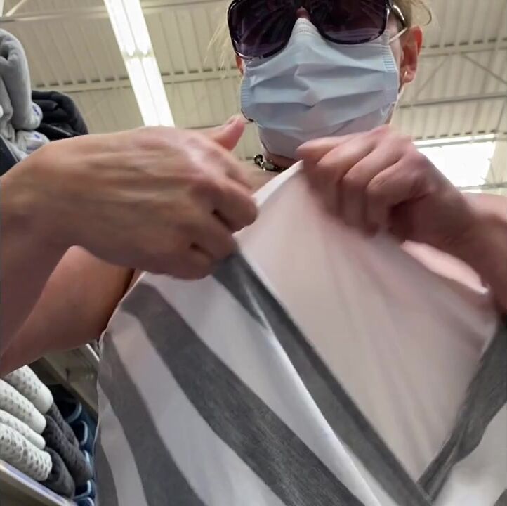 Her hat nipples and bouncy tits get exposed in Walmart.