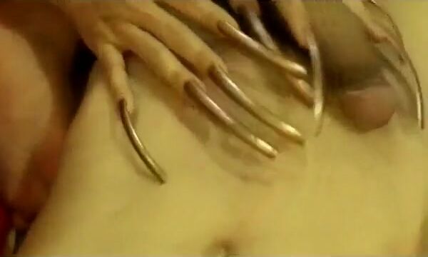 Handjob with shiny super longnails.