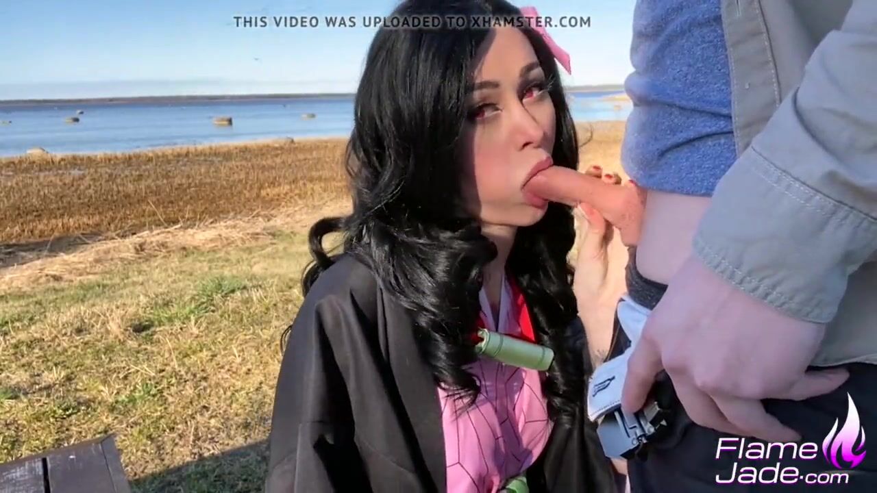 Nezuko masturbated pussy outdoor. The girl was declassified by her brother Tanjiro. The guy fucked the girl in the ass and cum in his mouth.