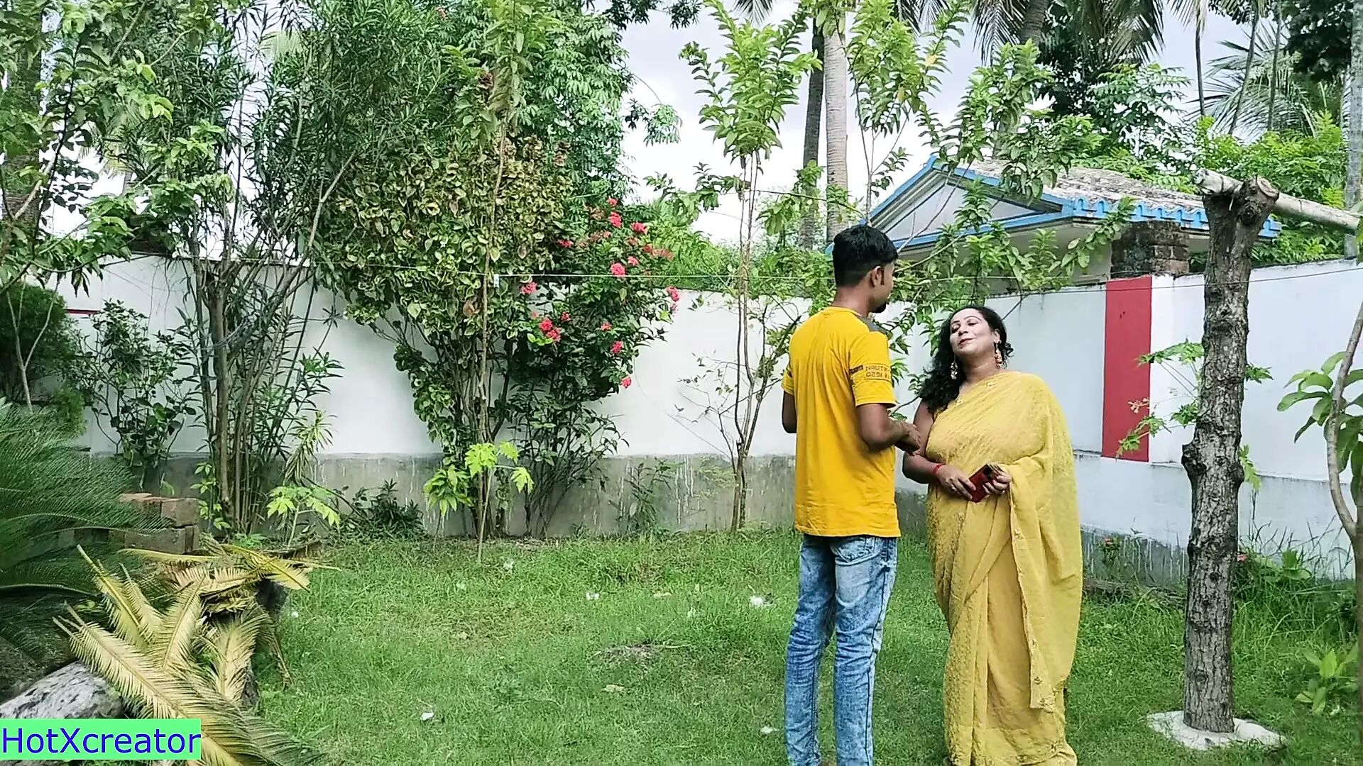 Hot Bhabhi was talking over phone at Garden and suddenly a thief take her mobile! Raja captured him and recovered her Mobile. Bhabhi got so pleased on him and promise to go his home! Hot web series