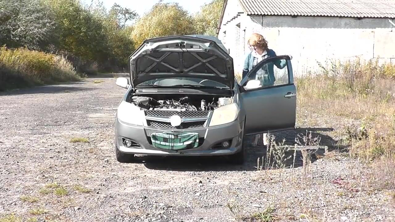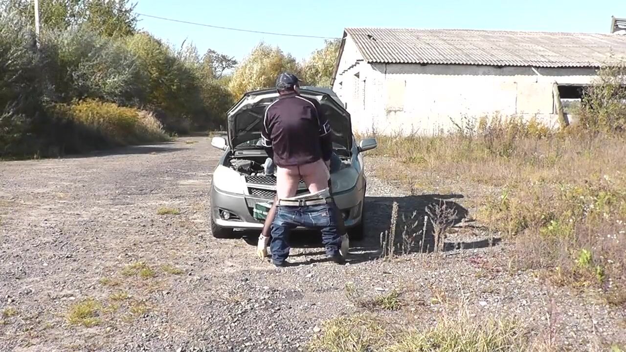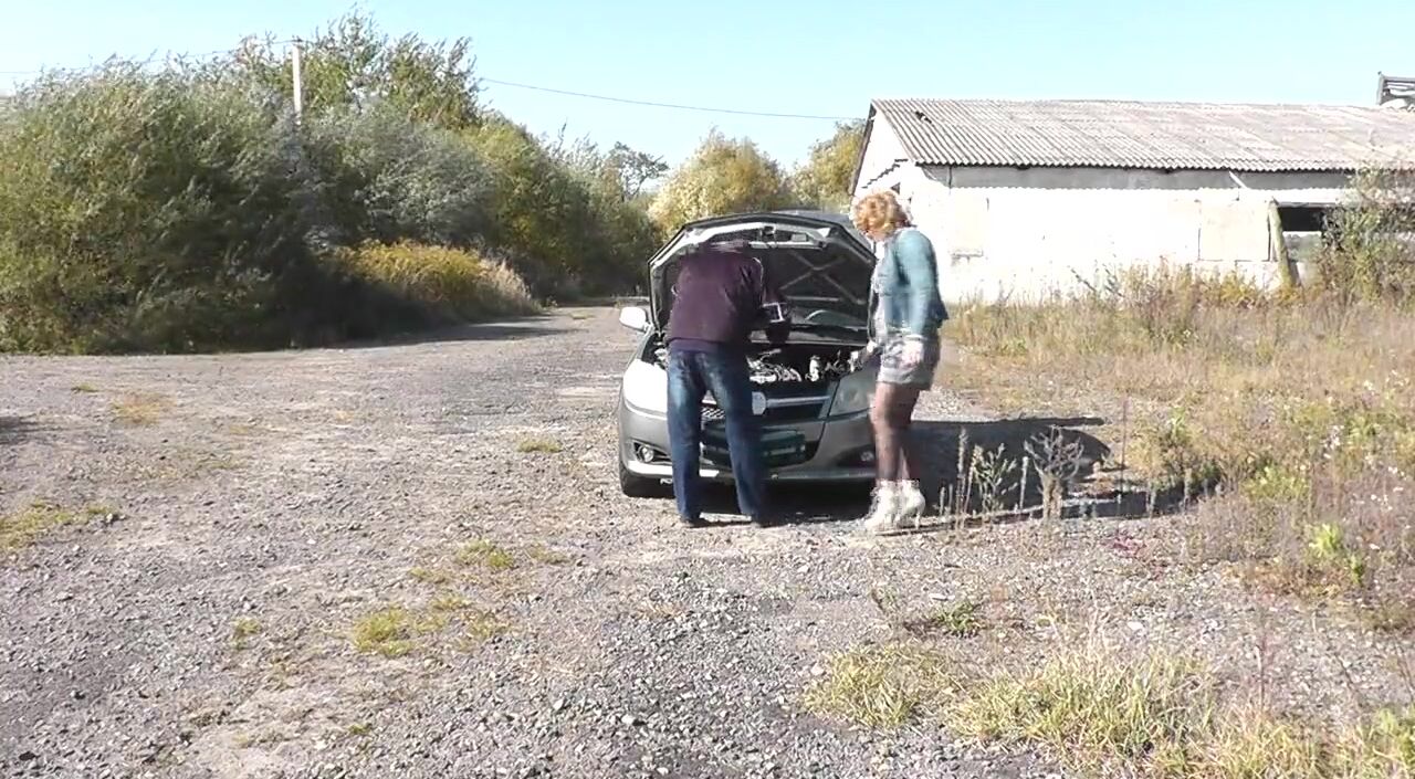 Sex in public. Sexy Milf without panties repairs a car. An accidental passerby helped with the repair, then fucked pussy on the hood of the car in a doggy style pose.