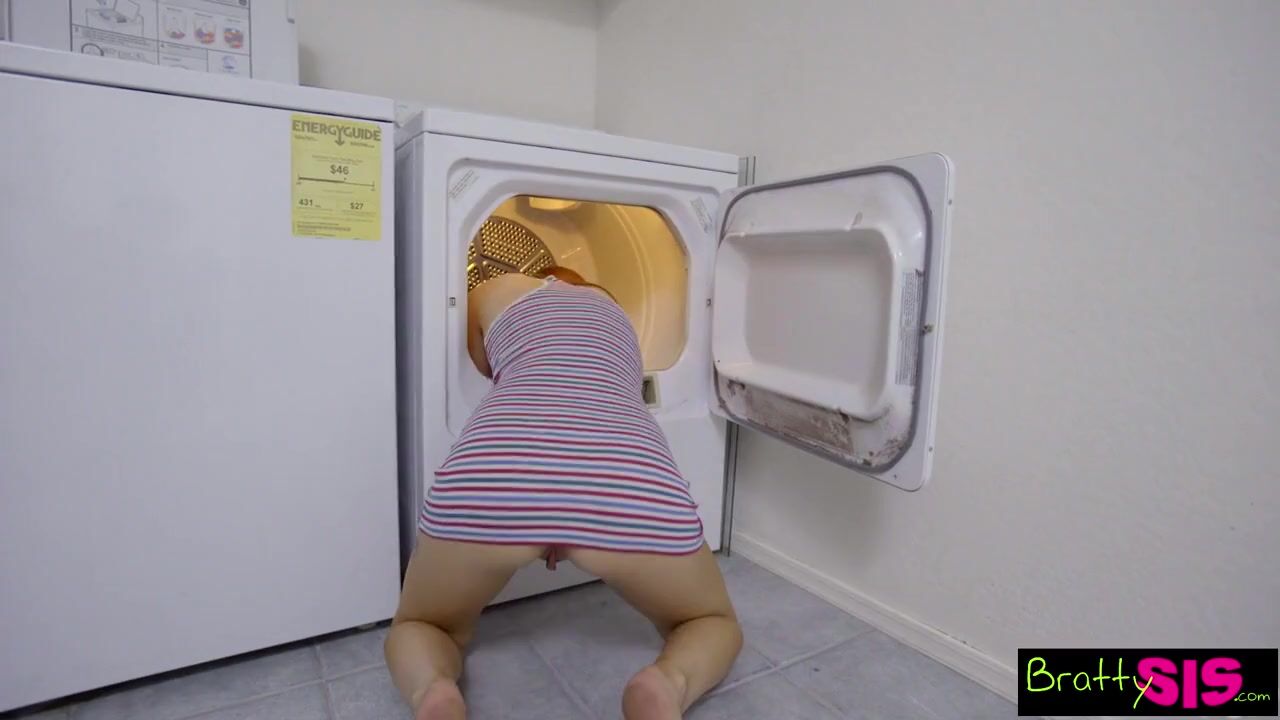 When my bitchy sister leaves me stuck in the laundry room I wait till she is bent over to stick my big cock into her teen pussy and fuck her till she is swallowing my load!