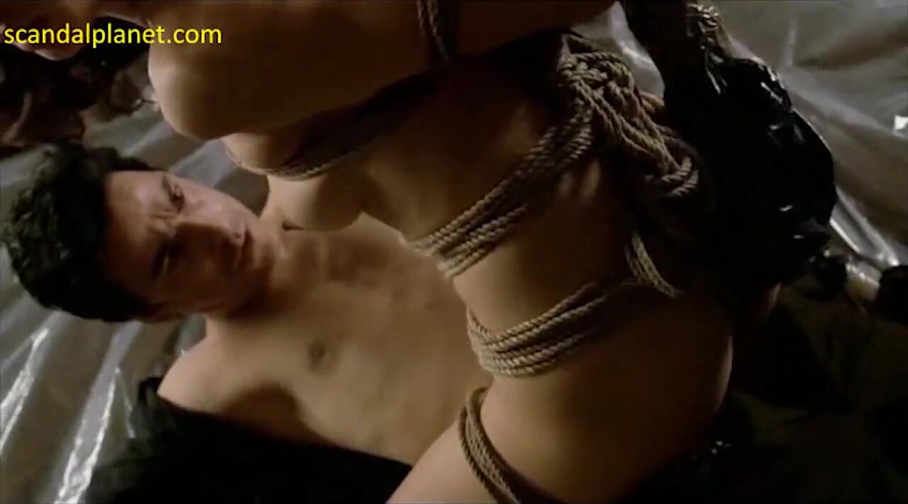 Olga Kurylenko in a very explicit and bizarre scene shows her naked body and tits. For those who like bondage and a firm attachment of the female body.