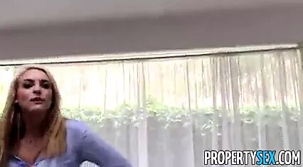 Stunning blonde real estate agent gets fucked by pervert with camera pretending to buy house into making homemade sex video.