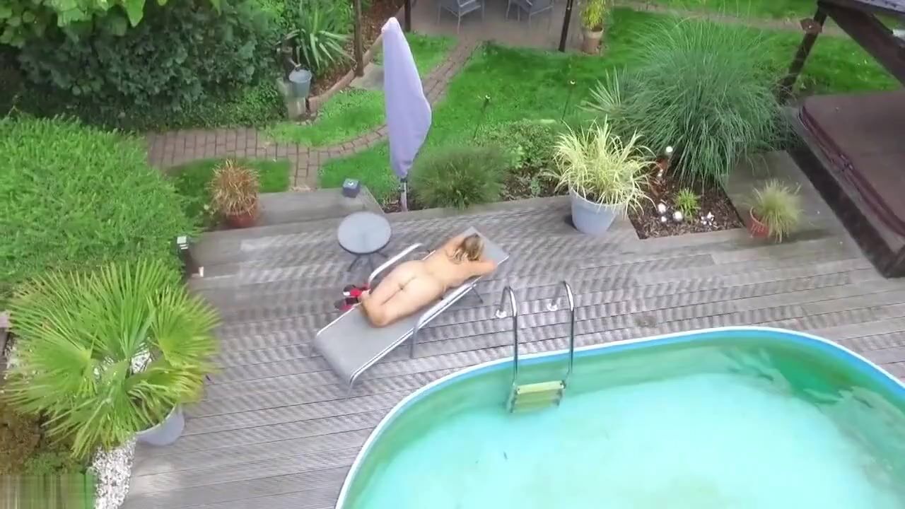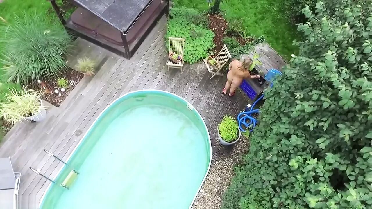 What a hot summer! My stepmother is all day long naked in the garden. She knows I like her curvy body and she teases me again and again. I have filmed her with a stiff cock in my pants from my bedroom