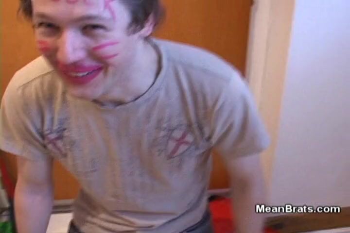 Girl draws on his face with lip stick then ball bust him with kicks. She tramples his balls and face then makes him lick off all the lipstick off the bottom of her shoe