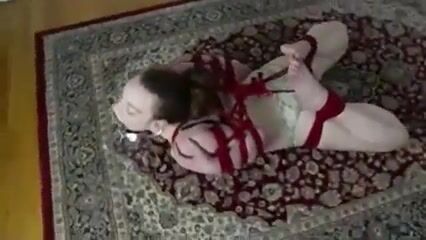 A girl is severly tied so tight she cant move