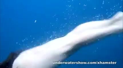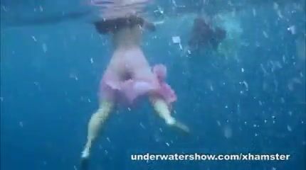 3 girls are stripping in the sea and swimming nude underwater
