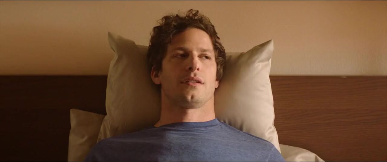 Nyles wanks after Misty leaves in the middle of fucking. Andy Samberg & Meredith Hagner in a scene from PALM SPRINGS.