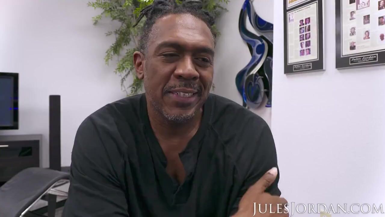 Jules Jordan's new secretary Bridgette B. earns herself a bonus from the BBC King, Dredd. Bridgette is walking around the warehouse picking some DVD's for her boss when she notices Dredd's giant BBC o