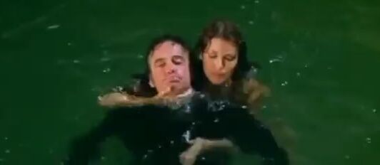 Raquel in see through swimsuit jumps in the water and saves a guy.