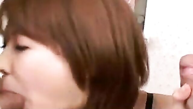 This sexy Japanese teen has a pair of crotchless panties on which is handy as it allows the two guys she is playing with good access. They lick her and she sucks them both before they fuck her in...