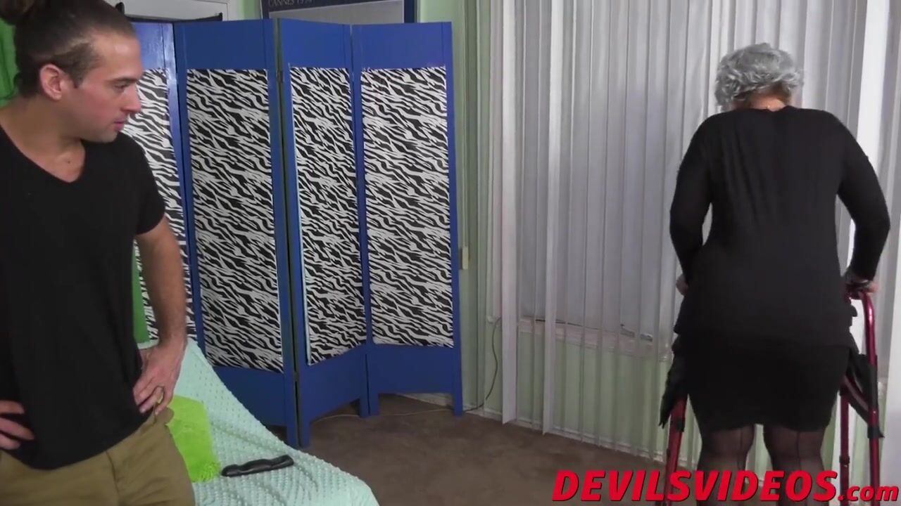 Naughty granny can't walk very good but she can suck hard cock like a pro and she proves it to this young deviant.