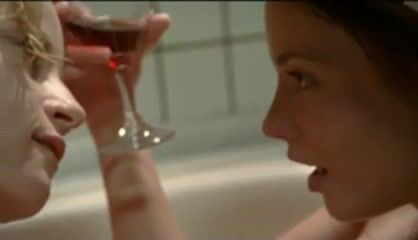 Rosanne Mulholland and some other girl sitting in bath tub both topless and running their hands over each others bodies and lesbian kissing each other while talking. From Coception.