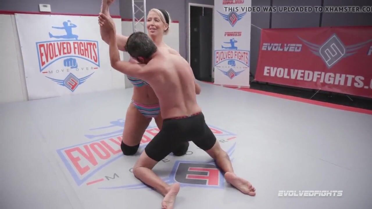 Huge tits MILF Alura vs Jay West dominates him and kicks his balls hard at Evolved Fights